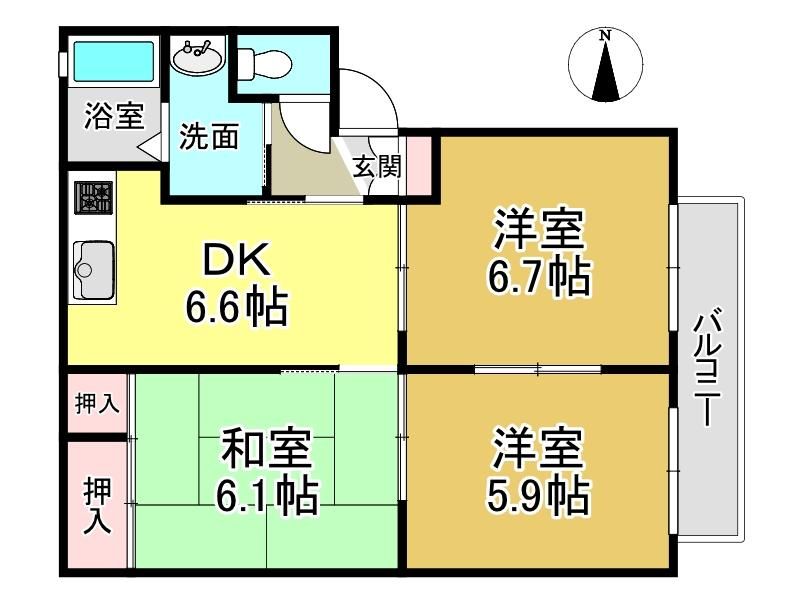 バリュージュU 大和八木の3DK賃貸ハイツ