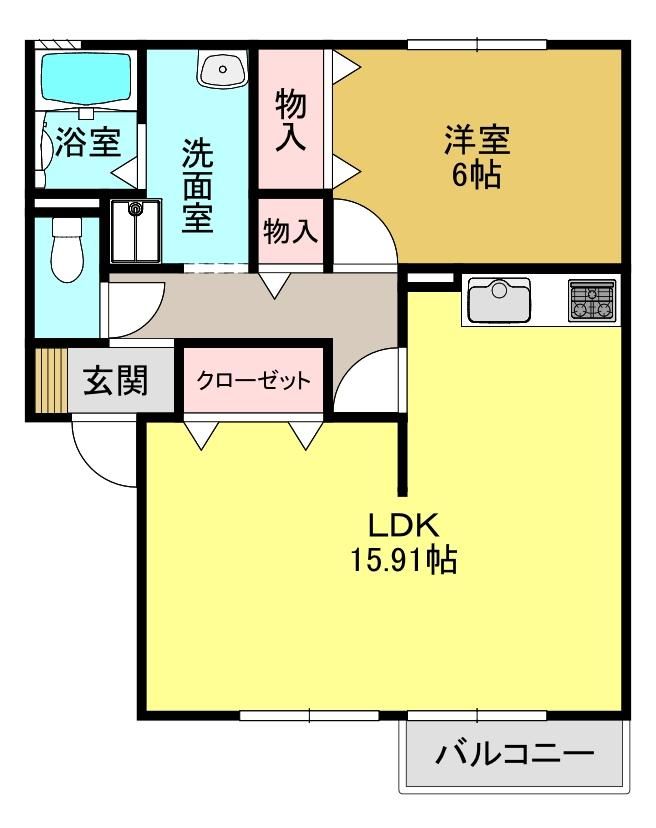 メゾンベイリーフ 尺土の1LDK賃貸ハイツ