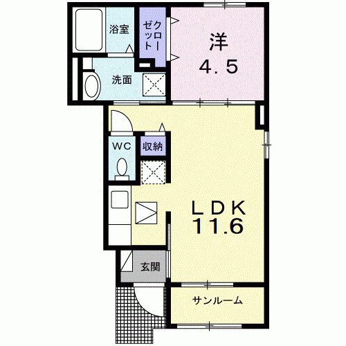 エヴァ グリーン ヴィラT 新ノ口の1LDK賃貸ハイツ