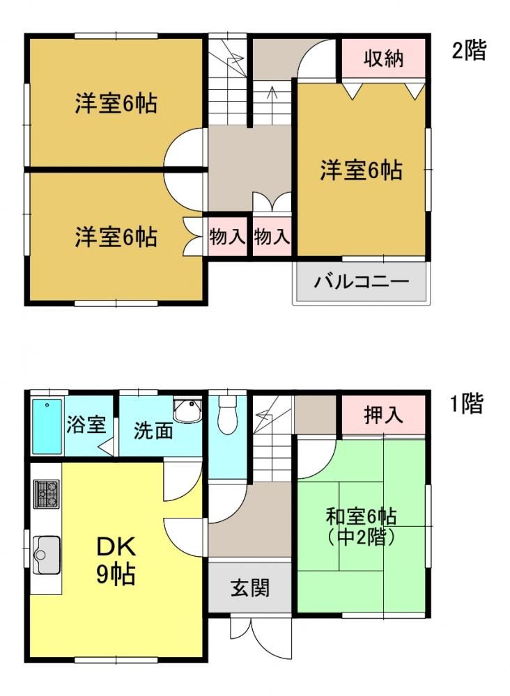 | 築年月 | 1996年5月 (29年) | 間取り | 4DK( DK9畳(1階)/和室6畳(2階)/洋室6畳(3階)/洋室6畳(3階)/洋室6畳(3階) ) | 専有面積 | 99.63m2 |