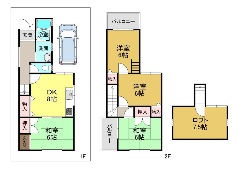 間取りはこんな感じです。リフォーム済でとても綺麗です。システムキッチンの3口コンロは新品に新調してあります。新品なので気持ちよく料理ができますよ。7.5帖のロフトは子供部屋や大収納としても使えます!なぜかわくわくするロフトは子供部屋としてお子様も喜んでくれそうですよ。笑。