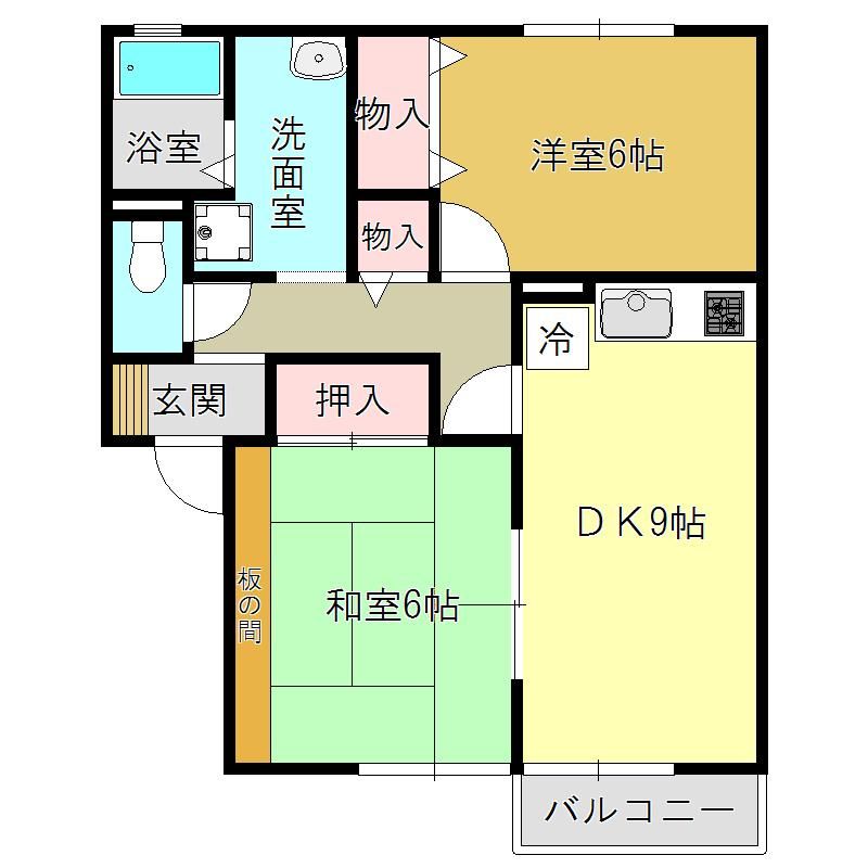 メゾンベイリーフ 尺土の2DK賃貸ハイツ