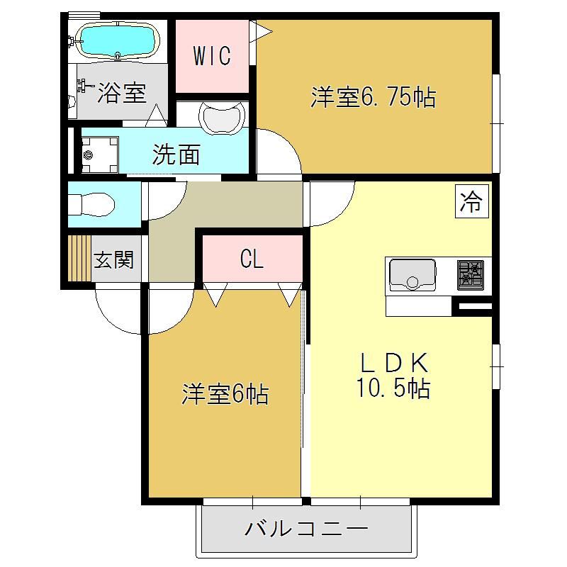 アルソレアA 大和新庄の2LDK賃貸ハイツ