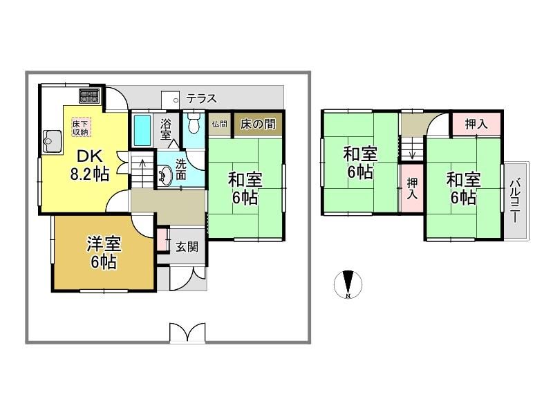 | 種別 / 構造 | 一戸建て / 木造 | 主要採光面 | 北 | 所在階 / 階数 | 1階 / 2階 |