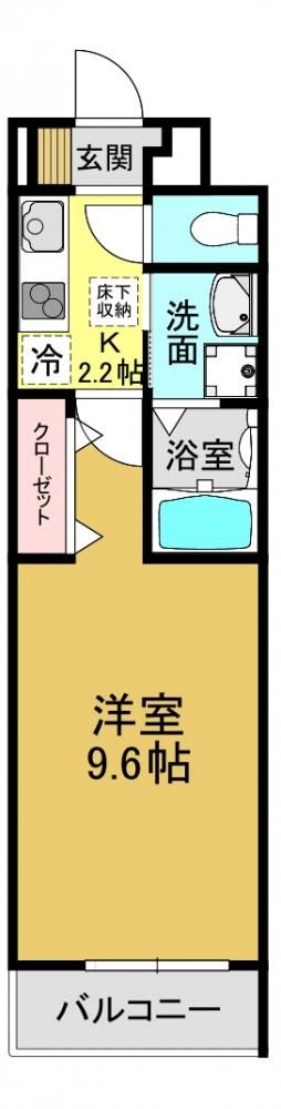 | 築年月 | 2023年11月 (2年) | 間取り | 1K( 洋室9.6畳/K2.2畳 ) | 専有面積 | 28.87m2 |