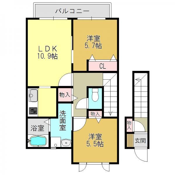 メゾン・シャトレールB 尺土の2LDK賃貸ハイツ